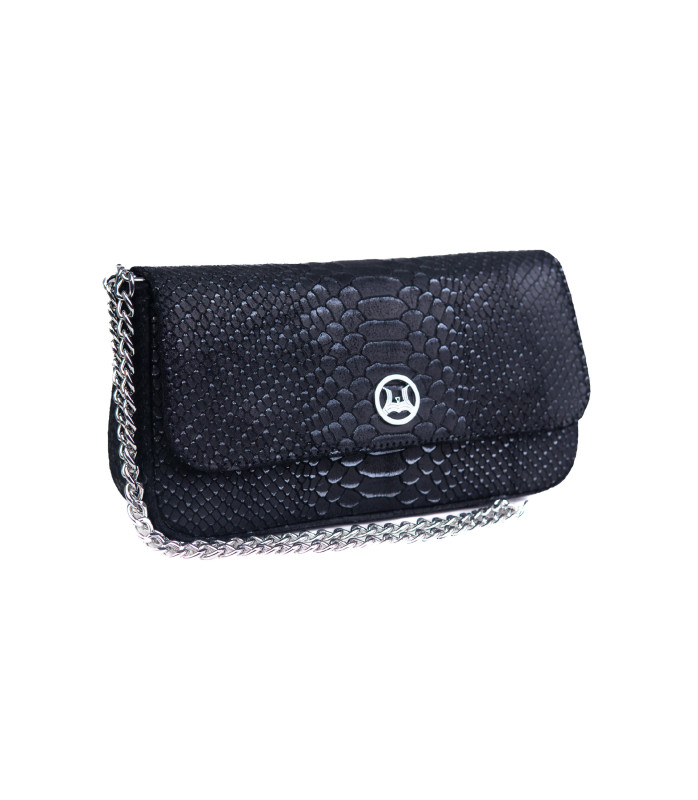 A twist on a classic flap bag, the Bamako reinterprets timeless elegance with contemporary sophistication. This stunning piece is perfectly designed for everyday use, featuring luxurious black python-embossed leather that adds texture and visual interest to any ensemble. The long shoulder chain strap makes it the perfect casual accessory that transitions seamlessly from day to evening wear. This versatile piece combines classic design elements with modern functionality for the contemporary woman.