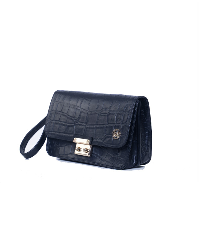 Crafted for the urban gentleman who values both style and utility. Its structured flap is secured with a sleek gold/silver toned click-lock closure, opening to reveal two mid compartments and an inner zip pocket for organized storage of daily essentials.