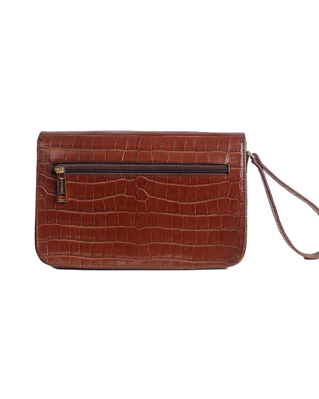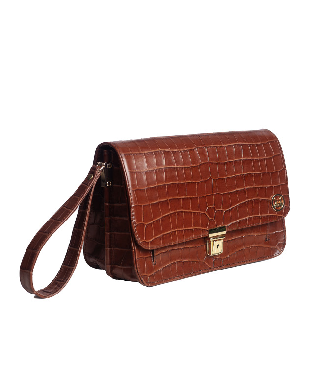 Home Product Man Bag: Cinnamon Brown Crocodile Print