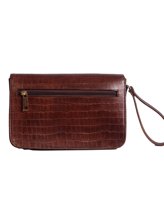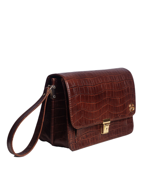 Crafted for the urban gentleman who values both style and utility. Its structured flap is secured with a sleek gold/silver toned click-lock closure, opening to reveal two mid compartments and an inner zip pocket for organized storage of daily essentials.