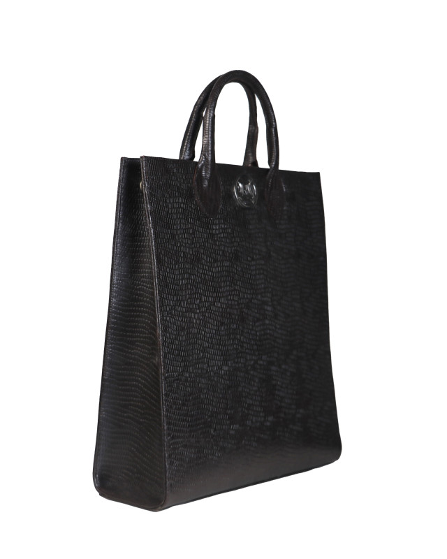 Home Product Man Tote: Dark Brown Monitor Lizard Print