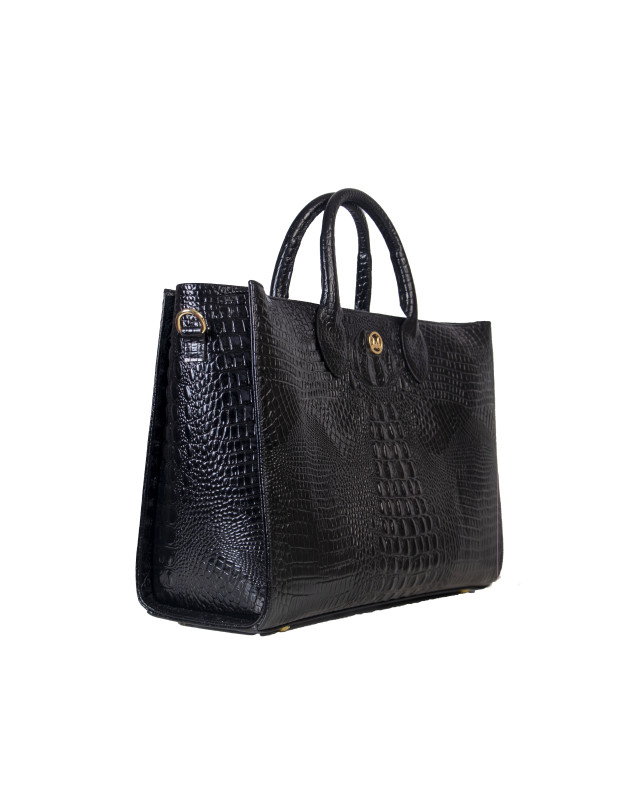 Home Product Midi Man Tote: Limited Edition Black Textured Crocodile Print
