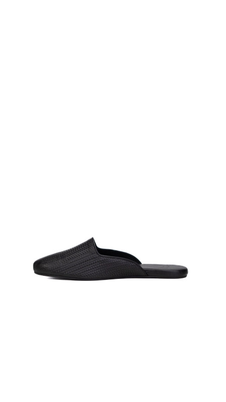 It features a flat sole and Square cut shape for a newer spin on the classic basket mules.