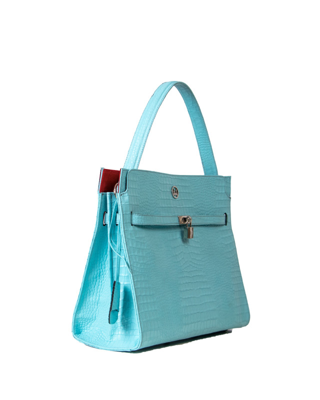 Signature padlock closure for security and iconic style.