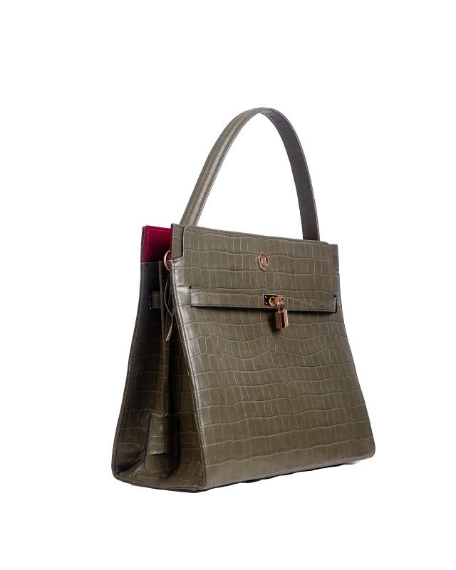 The signature padlock closure becomes more than hardware—it's a symbol of security and confidence locked in place.