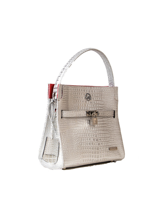 The signature padlock closure becomes more than hardware—it's a symbol of security and confidence locked in place.