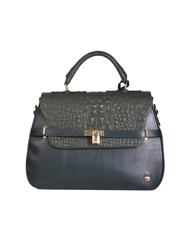 Brazzaville: Hunter and Seaweed Green Textured Crocodile Print