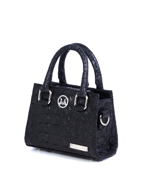 Petite yet powerful, the Lagos Micro celebrates the vibrant spirit and strength of the modern Lagos woman. Crafted in sleek black reptilian-embossed leather with refined metal hardware, it blends bold style with timeless elegance. Its structured silhouette and glossy finish make it the perfect accent—from daytime hustle to evening glam.