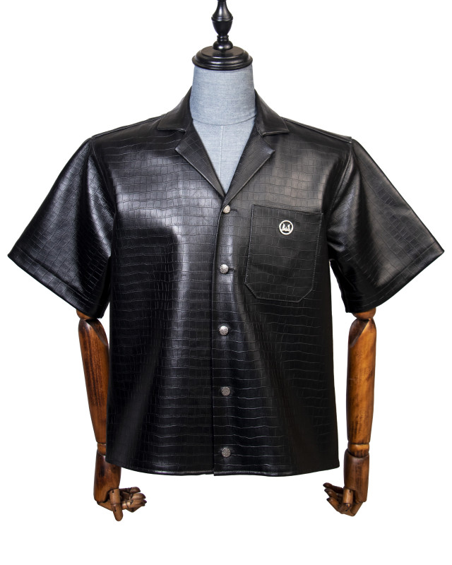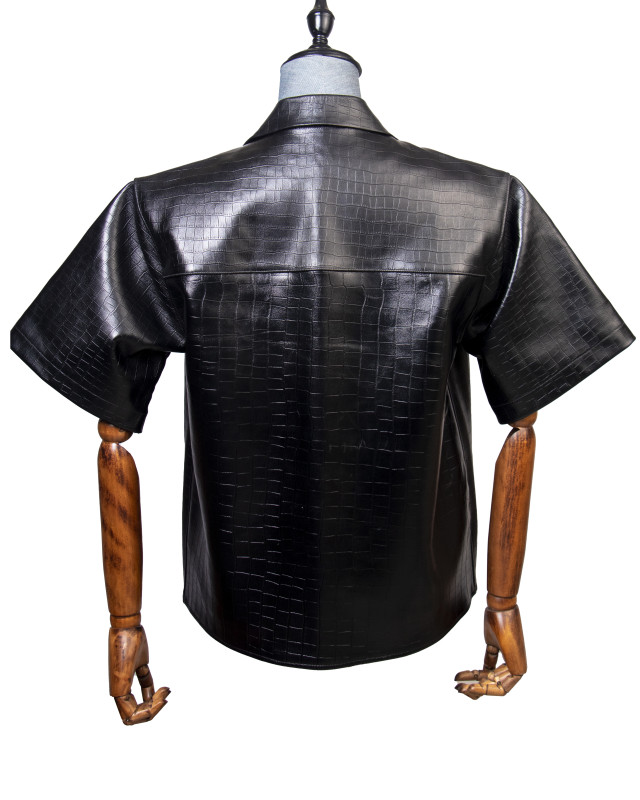 Home Product Leather Shirt: Black Crocodile Print