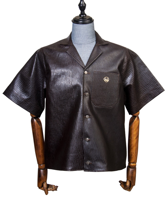 Home Product Leather Shirt: Brown Monitor Lizard Print