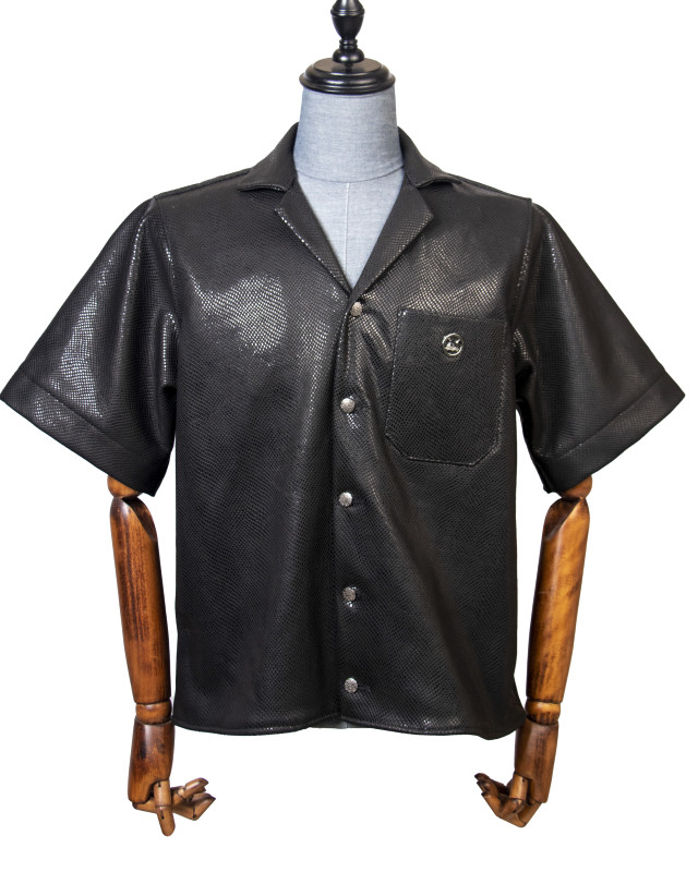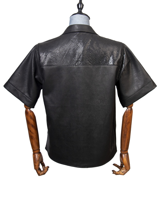 Home Product Leather Shirt: Metallic Black Reptilian Print
