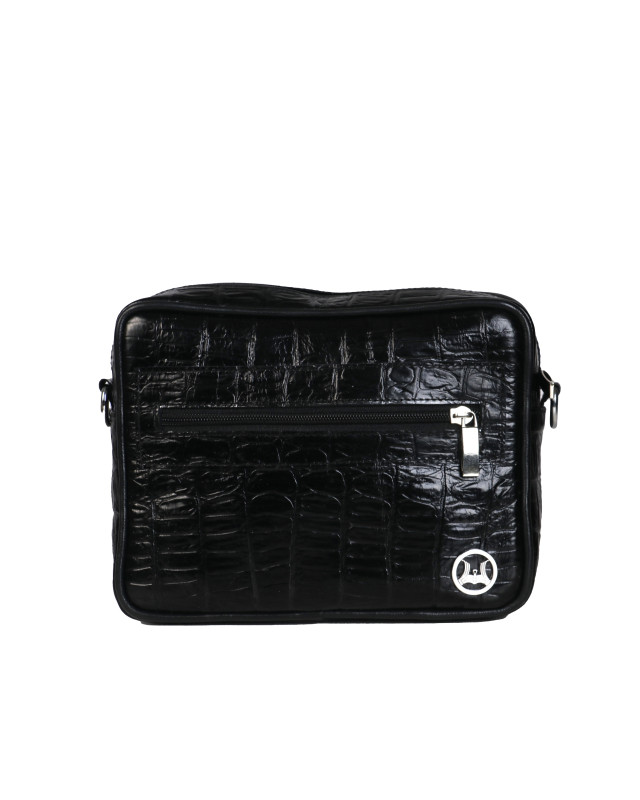 Home Product Messenger Bag: Black Textured Crocodile Print
