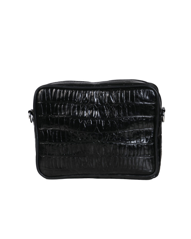 Messenger Bag: Black Textured Crocodile Print
