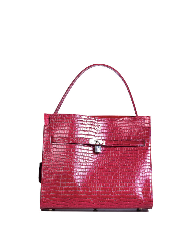 Signature padlock closure for security and iconic style.